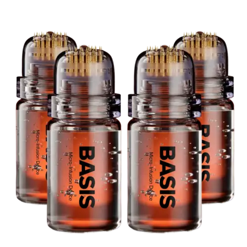 Standard topical nutrients often sit on the surface. BASIS uses a mechanical micro-infusion process to gently engage the scalp’s outer layer, allowing our 5-in-1 serum to reach the skin more effectively. By supporting the scalp’s natural moisture barrier and surface renewal, BASIS helps maintain the appearance of thickness, strength, and hair vitality